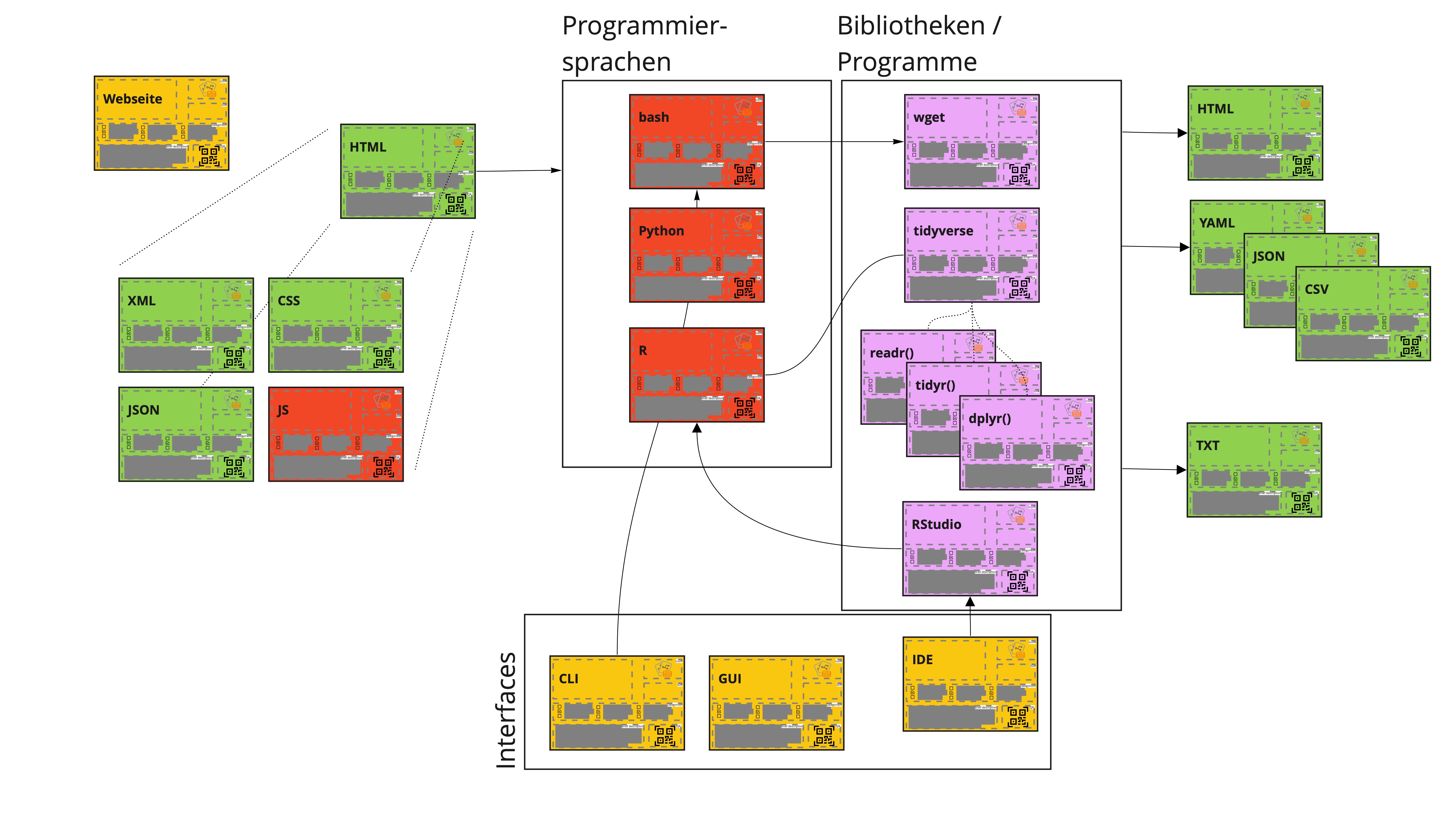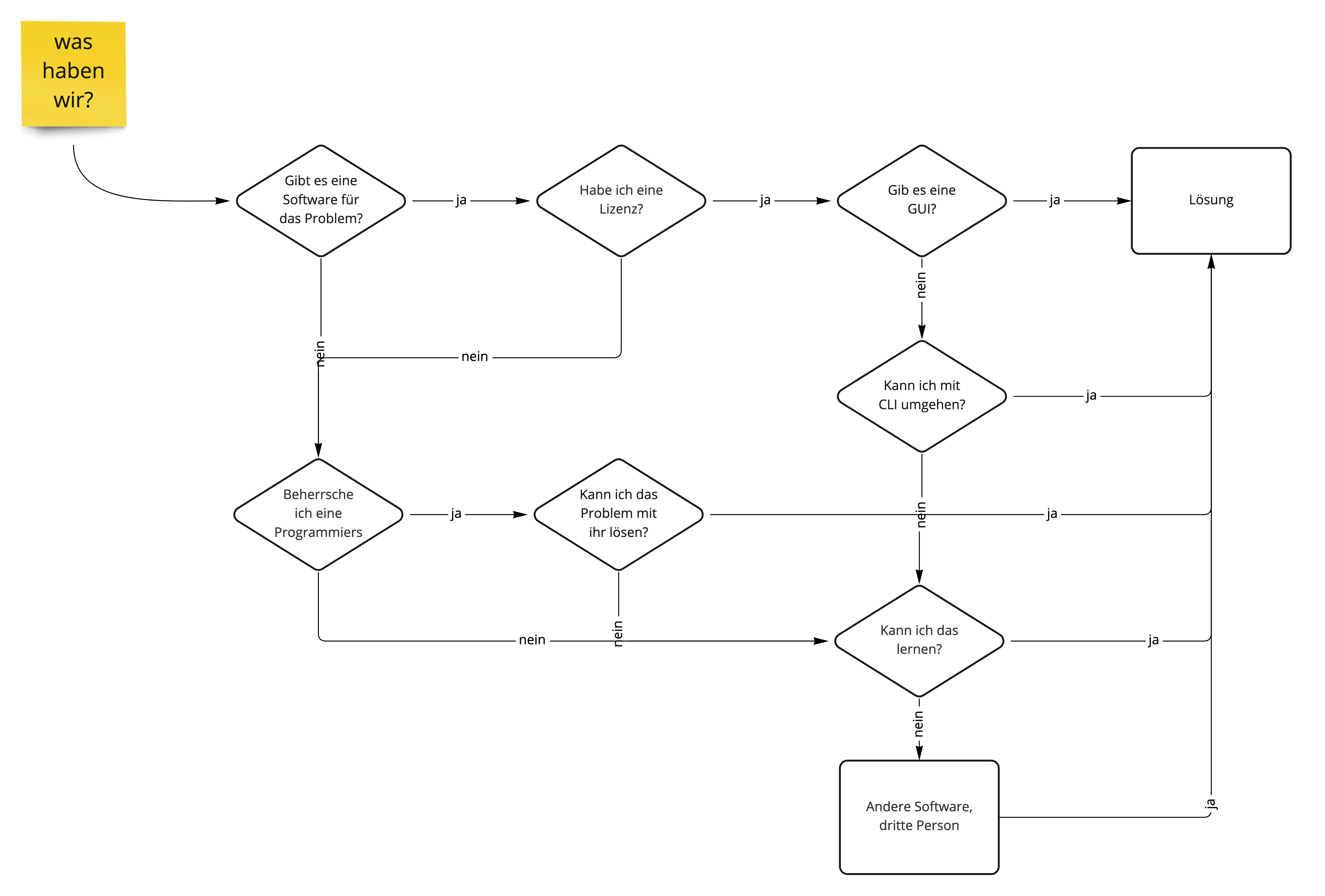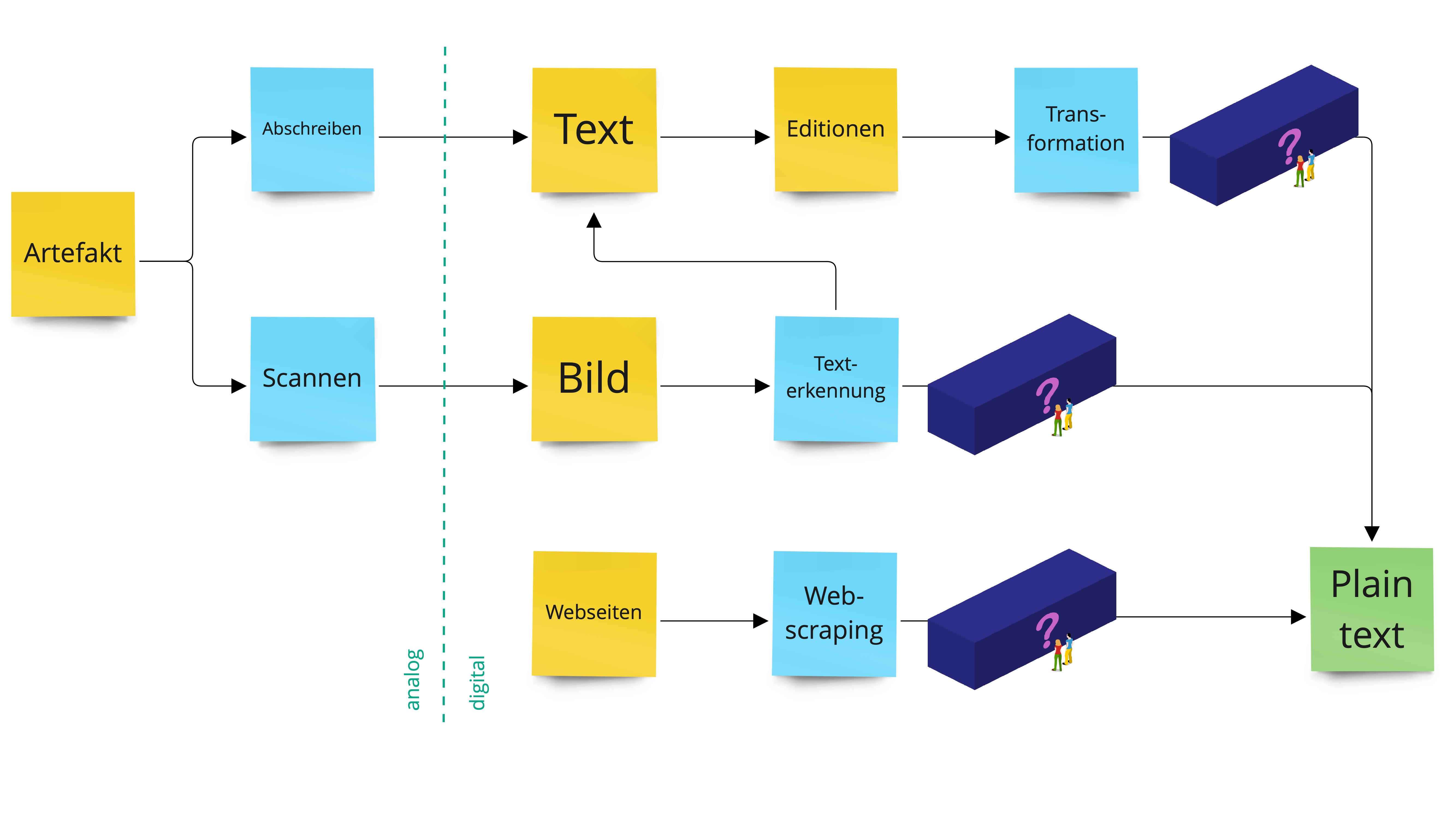 Im Sinne des minimal computing ist das Spannungsfeld aus “was brauchen wir?” und “was haben wir?” handlungsleitend. (Gil und Ortega „Global Outlooks in Digital Humanities“ 2016)